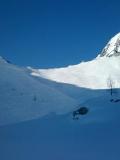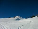 dolino.Sneg je še suh,skoraj pršič,tako da je bila smuka odlična.Ob pogledu na Srenjski preval sem se odločil da grem tja,saj je zgledlo da je še