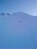na kuzlah, al cuckih al kakorkol že do 1620m. Tam sva bila že v grapi pod sedlom, je bilo strmo in je preveč drselo na smučkah tako da sva