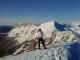 pršiča, nato pa pohitel nazaj navzgor po smučini za Janezom na Vrh Krnic(1896m). Tam sva se še zadnjič pripravila na smuko, si ogledala zahajajoče