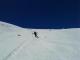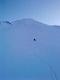 temu sem potegnil lepo smučino vse do vrha, Janez pa se je na vršnem pobočju raje odločil za vertikalno linijo in uporabo derez. Na vršnem grebenu je