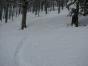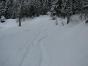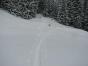 vrha, potem pa obrnem. Smučam po okoli 35-40 cm pršiča, kar je seveda pravi užitek, le, da je prostora zaradi dreves premalo za breskrbno vijuganje.