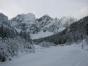 ampak tisto bo šele popoldne. V zatrepu doline je dober meter snega, starega in novega, nad zatrepom pa eden najlepših pogledov na ostenja od Visoke