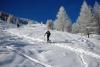 kar pihalo.Smučanje nazaj pa ves čas po pršiču,ki pa bo glede na število smučarjev popoldne že ves prevožen.Zelo lepa tura za začetnike.