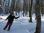 Skupaj smučamo sprva bolj v desno do opuščene staje, zatem pa po gozdnatem slemenu vse do ceste. Pršiča ravno prav za uživaško vijuganje. Prečimo