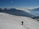 Jaka, puhca) na skoraj nič podlage, višje pa se sneg lepo odebeli, a kake ogromne količine ravno ni. Večino vzpona sva opravila v kratkih rokavih,