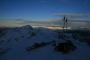 Vmes je en kopen 5 metrski skok, ki bi tudi onemogočal smučanje. Na grebenu me ujame sončni vzhod. Sprehodim se na vrh in se pripravim na smuko. Sneg