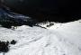 rodici. Pri eni od grap, ki gre na greben med Rodico in Novim vrhom(Purntolom)se usmerim navzgor. Sneg je trd tako, da z derezami hitro napredujem.
