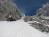 pričakajo že znana slabo zasnežena pobočja pod štalami, ampak to je kratko, naprej je snega dovolj. Grem po lepo pomrznjenem snegu proti Škrbini nad