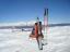 megle. Z vrha malo potrese smuči, potem pa ... Zelo super smučarija, trdo, čez pa 2-3 cm suhca. Žleb so včeraj speglali (abručali) ravno za talepe