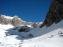 Kmalu sem ugotovila, da brez derez ne bo šlo, saj je par cm poprh ležal na živem ledu. Pot čez poledenele plaziče je zgodba zase, ko pa sem prišla na