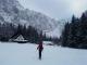 vijuganje. Nižje je bila pod pršičem ponekod skorja, kar naju je spet usmerilo proti trši podlagi sredi doline, ki je lepo pokrita s pršičem