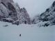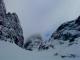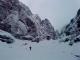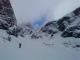 bolj trd in leden in čedalje manj je bilo trde klože, ki je omogočala vzpon na smučeh. Vzpon sva zaključila kakih 20-30m pod mestom, do koder se