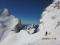 uživaški podlagi, v zgornjem delu je ob levem robu tudi dobra gaz s stopi. Nad Jezerci sva smuči odložila in skupaj smo se povzpeli na kralja