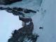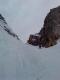 manevrskega prostora raje sestopila s pomočjo derez in cepinov. Čim sva opazila prvo sled smučanja in primeren prostorček za preobuvanje, sva se spet