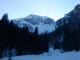 žleb in še pod njim do gozda, naprej do planine pa je šlo po rahlem suhem snegu lepše. Na planini sem na smuči ponovno pritrdil pse in se povzpel k