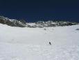 dolino.Držali smo se levih osončenih terenov,kjer je bil sneg poznopomladanski.Zadnji del pa po od turistov shojeni stezi,ki so se nam spretno