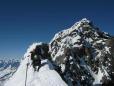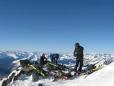 obleke.Ker nas čaka še sestop,ki je kar zahteven se ne obiramo preveč.Z pomočjo vrvi opravimo z škrbino nato pa previdno do smuči.Po rampi tik pod