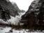 žalosten. Malo snega, veliko plazovine. Pa vseeno smo se podali v željeno smer in med potjo ugotovili, da se da med skalami in ruševjem dobiti kar