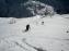 postanku na vrhu smo se po grebenu spustili proti zahodu, tam kjer poteka letna pot, potem pa zavili po lepo smučljivem severnem pobočju proti sedlu