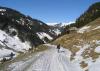proti Stuhleralm. Pogledi na travnata pobočja niso bili najbolj vzpodbudni, ampak cesta je bila zasnežena in sva ji sledila po vseh ovinkih. Šele