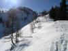 In sva zato ponovila nedeljsko turo do vrha. Vzpon je bil na tokrat na začetku ledeno kopen. Višje pa pršič še ni izginil. Tokrat sva z vrha