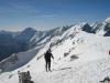 štart z Vršiča šele ob 09:20 je bilo ravno prav ojuženo, da tudi derez ni bilo treba obuvati. Smučanje v kotanjo med obema Mojstrovkama in nato še