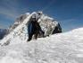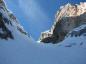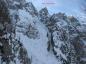 sem nadaljeval kar z derezeami, saj je sneg kar dobro držal. Na vstopu v "žleb" ni bilo nobene špure več (kot jih navaja Rok), naletel pa sem na