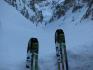 prejšnjih let znano in tudi že prehojeno grapo, ki jo krasijo ledni slapovi. Na izstopu se mi ni zdelo smiselno spet menjavati derez za smuči, zato