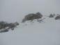 rahlo prepoložna, zato jo občasno uberem po svoje. Zaradi megle moram paziti, da ne zgrešim odcepa na ta Velikega. S smučmi se spraskam prav pod