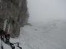 prečim v desno, po izkušnjah iz preteklih let je tam ponavadi ledeno, zaradi megle seveda ne vidim, zato izberem lažjo varianto, da me ne bi kaj