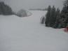 Po dveh dneh v Karavankah, kjer je snega le za vzorec, me je spet potegnilo na romarsko pot. Spodaj na parkirišču je opozorilo, da je pot ledena, ker je snežilo in se je sneg sprijemal ni prav nič drselo, so se pa hotele nabirati cokle, a sem jim s preventivo to preprečil. Mimo Višarske planine je bilo danes prav samotno, pri "Lucovi" kapelici zavijem v levo in po utrjeni špuri v Krnico v klobuku. Tam zaslišim neko govorjenje ali bolj "ropotanje". K sreči so zavili v levo, jaz pa direktno pod vstopno "grapo" in peš s smučmi v rokah na vrh. Pozvonim za srečo, potem pa nesem smuči dol do sedelca, snega namreč na vrhu ni in odsmučam "grapco", ki je spodaj ozka za dolžino smuči (170 cm). Nadaljujem skozi Krnico in po moji varianti do ceste, ki pelje v Zajzero, lahko bi rekel, smuka po pršiču. Kužke nazaj gor in po cesti do planinske koče, kjer sva po dolgem času spet prijetno pokramljala z g. Mešnikom, brez zaključnega "ta kratkega" tudi tokrat ni šlo. Smučišče v Žabnico je bilo skoraj prazno, kakih 5 cm novega snega na stari podlagi je zgledalo kot, da bi smučal izven smučišča. Seveda pa bodo razmere že jutri povsem drugačne, še boljše.
