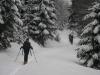 pobočju in je na njej ostal pršič. Na grebenu sta se izmenjevala pršič in skorja. Zadnjih 100 metrov pa je bilo treba peš. Iz vrha smo odvijugali,