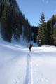 proti sedlu Vrata, Vlado in jaz sva šla po smučarski varijanti - prečka pod Vršaki je potekala v sipkem pršiču, tako da sva jo raje šla peš. Do