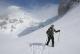 naprej. Sneg je bil suh, prvih 20 min se je vdiralo, nad cca 1750 m je skorja držala. Željko in Rene sta se, po že splaženi grapi povzpela naravnost