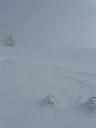 pri bivaku in se vzpnem še na Gladki vrh, ki je nudil lepo flanko na ustaljeno smučino.Megle vse več pa tudi smuk čez Razor me ni pritegnil(premalo