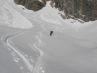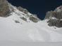 desnega ovinka cste, ki pelje do koče Marinelli, tam pa direktno gor. Sneg večinoma suh, pršič oz. mehka kloža, na strmem delu tudi splaženo. Od