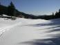utrjena, pa tudi snega je v senčni dolini še dovolj. Kjub temu pa sem moral zaradi strmega kamnitega prehoda in podrtega lesa, na dveh mestih smuči