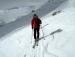 2x je bilo treba sneti smuči. Vzpon na vrh je bil itak odpovedan že kmalu. S škrbine smo šli slabe 50m do snega. Veter pa nabijal sneg. Po celi