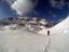 pa skorjasto. Z vrha je Rok zavil na flanko ki pada v dolinico med vrhovoma. Mene je bolj zanimal greben, a sem tudi jaz prepoznal vzorec na snegu,