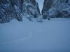 Popoldanski Jalovec je ponudil lepo zimsko turo. Od doma v Tamarju je bilo potrebno vleči novo špuro na cca. 20cm pršiča, v kuloarju ga je