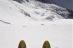 pogledov in obrnem navzdol. Sneg je po deseti uri že lepo popustil, tako da je spust kljub strmini zanesljiv. Smučam v krnico, pa med rušjem v smeri