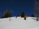 "smotan", da je še s cepinom in derezami šlo počasi. Tudi za smučanje sneg ni bil ravno idealen, a zavijati se je dalo, le zelo naporno je bilo. Če
