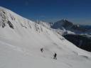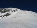 božjih arhivih… Kakorkoli, ko smo dosegli izravnavo pod vrhom, smo presodili, da je za smučanje z vrha premalo snega, predvsem zato, ker je bil