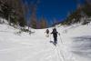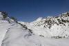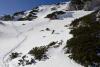 Da ne bomo kar naperj lazili na Pecol in da se vendarle ognemo kložam, ki grozijo na severnih pobočjih, smo izbrali Ojstrico. Cesta je sicer zasnežena, vendar do Planinška vozna brez probelma, naprej pa ne gre. Tako smo najperj debelo uro drsali cesto, potem pa mimo planine Podvežak in pred Črnim vrhom še tri in pol do Korošice. Na Ojstrico je bil sneg malo gnil, malo skorjast, zadnji sneg je na trdi podlagi tudi precej drsel, tako da je bil vzpon do sedelca pod vrhom na višini 2270 m kar naporen in je za sam vrh zmanjkalo energije in časa. Tudi smuka do Korošice ni bila prav lahka. Z Matijo sva nazaj grede smučala na Moličko planino po malo pršiča na trdi podlagi, prav prijetno. Ta varianta ima še to prednost, da greš najprej pošteno dol, potem pa gor, ne pa kar naprej gor in dol kot pred Črnim vrhom. Do planine Podvežak je bilo ptoem precej mešano, deloma že spet pomrznjeno, po lepo zasneženi cesti pa je potem šlo hitro do avta. Lep dan, le do Korošice je daleč in v obe smeri gre navzgor.