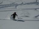 vznožju), kar nama je dalo dober izgovor, da obrneva tudi midva, "sicer nama bodo vse zvozili". Tako sva res užila nekaj nedotaknjenega pršiča do