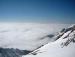 povzpeli na vrh. Razgledi spet taki, kot si jih želiš, v dolini pa morje megle. Mraza nobenega, o vetru ne duha ne sluha. Malo smo postali, si