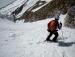 strmina že nekoliko neudobna za cikcakanje, saj je bil sneg ojužen in je oddrsavalo, so smuči romale na nahrbtnike. Po že udelanih stopah smo se