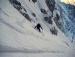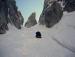 po skali malo rušju na greben. Od tam direktno po grapi čez dva skoka, kjer je bil nepredelan sneg. Ves čas se je menjala kloža, pršič in beton. Ko