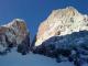 postavilo bolj pokonci, pa sva pod derezami začutila trdo, pravzaprav ledeno podlago nad katero je bil zmehčan sneg. Z višino so se razmere sicer