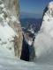 odločil za manj presmučani, od zgoraj gledano desni izstopni žleb, ki vodi pod Jalovško škrbino, kjer je bilo le nekaj smučin, pa zato veliko pršiča.